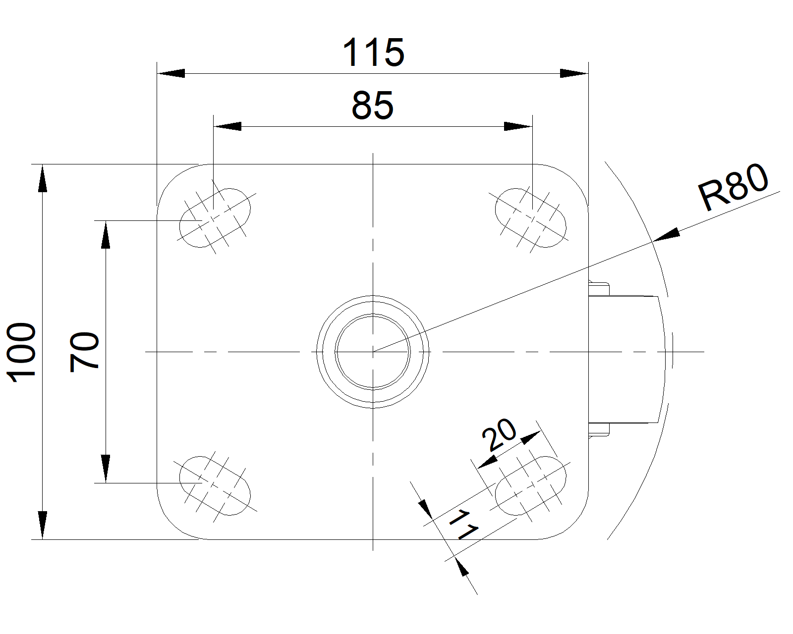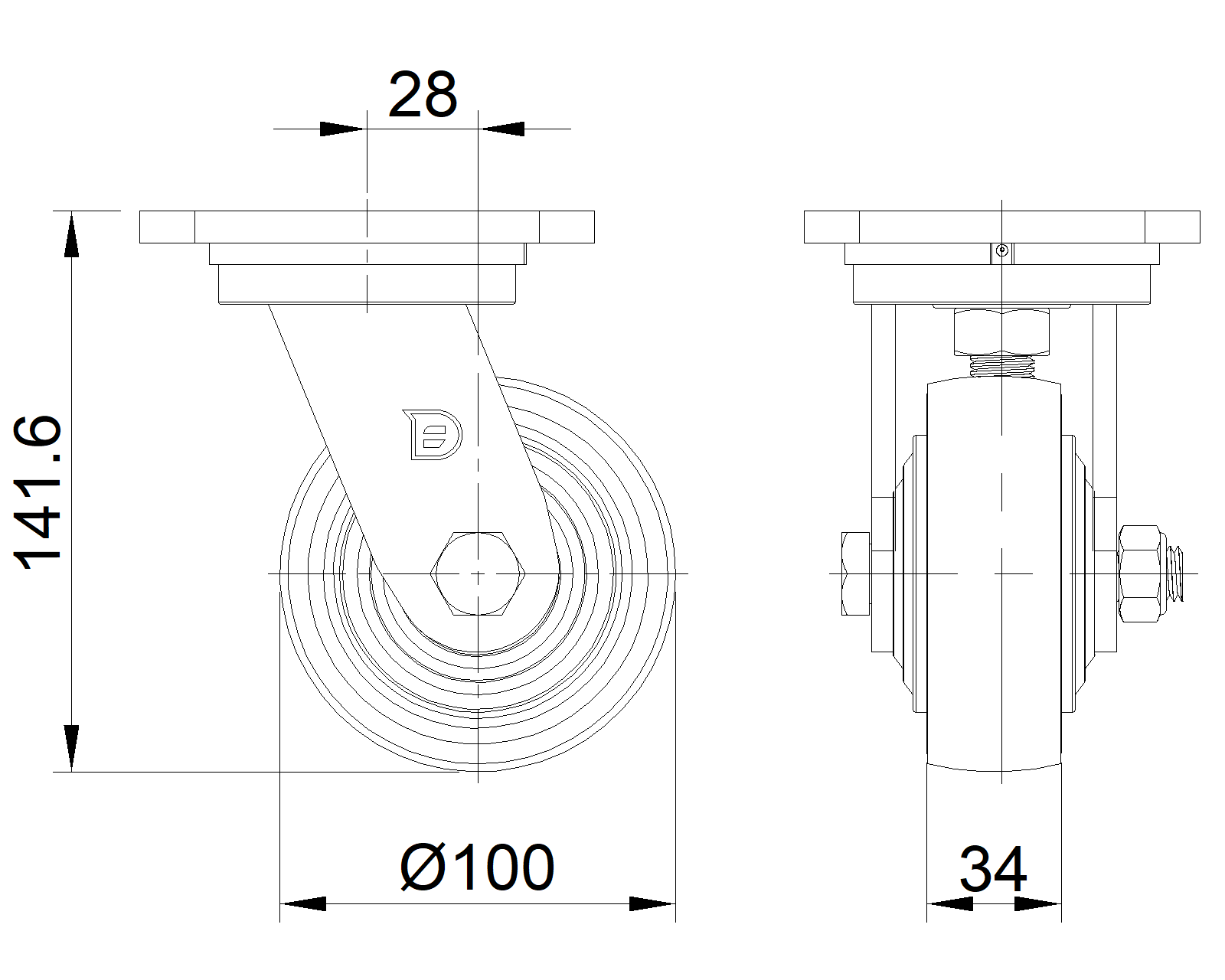 | PU Bánh xe (Vòng cung đỏ) đường kính bánh xe × chiều rộng bánh xe 100 x 34mm |