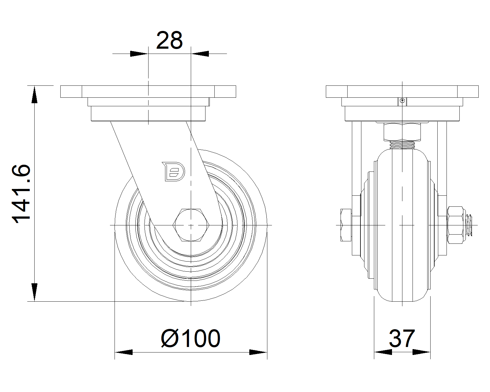 | Kéo NBR Wheel (Mill Raw) Đường kính bánh xe × Chiều rộng bánh xe 100 x 37mm |