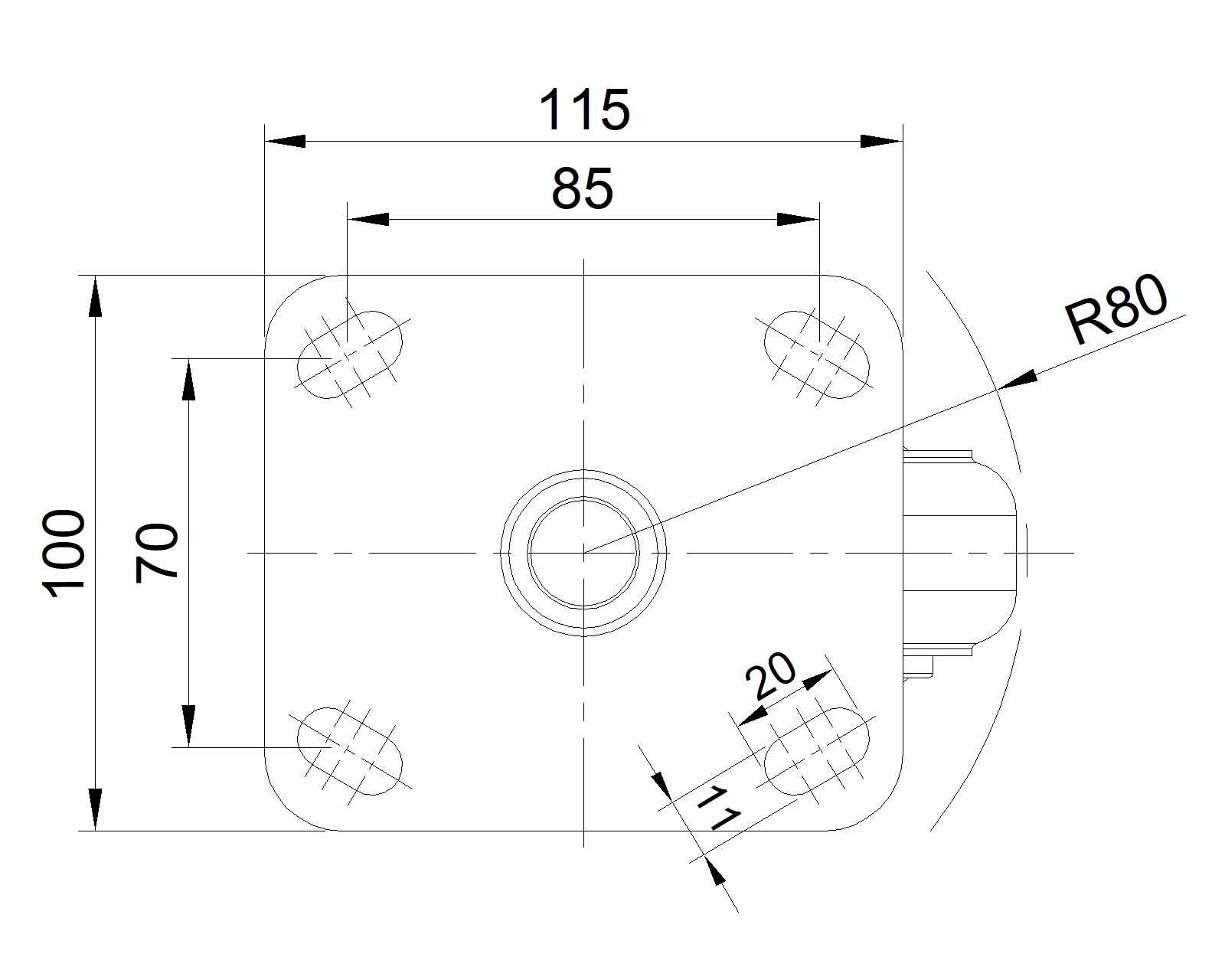 Lắp đế, khoảng cách lỗ 85 x 70. Lõi gang, mặt cao su đàn hồi cao chất lượng cao, được phay hoàn thiện tự nhiên. Vòng bi bánh xe—vòng bi cầu chính xác.  |
