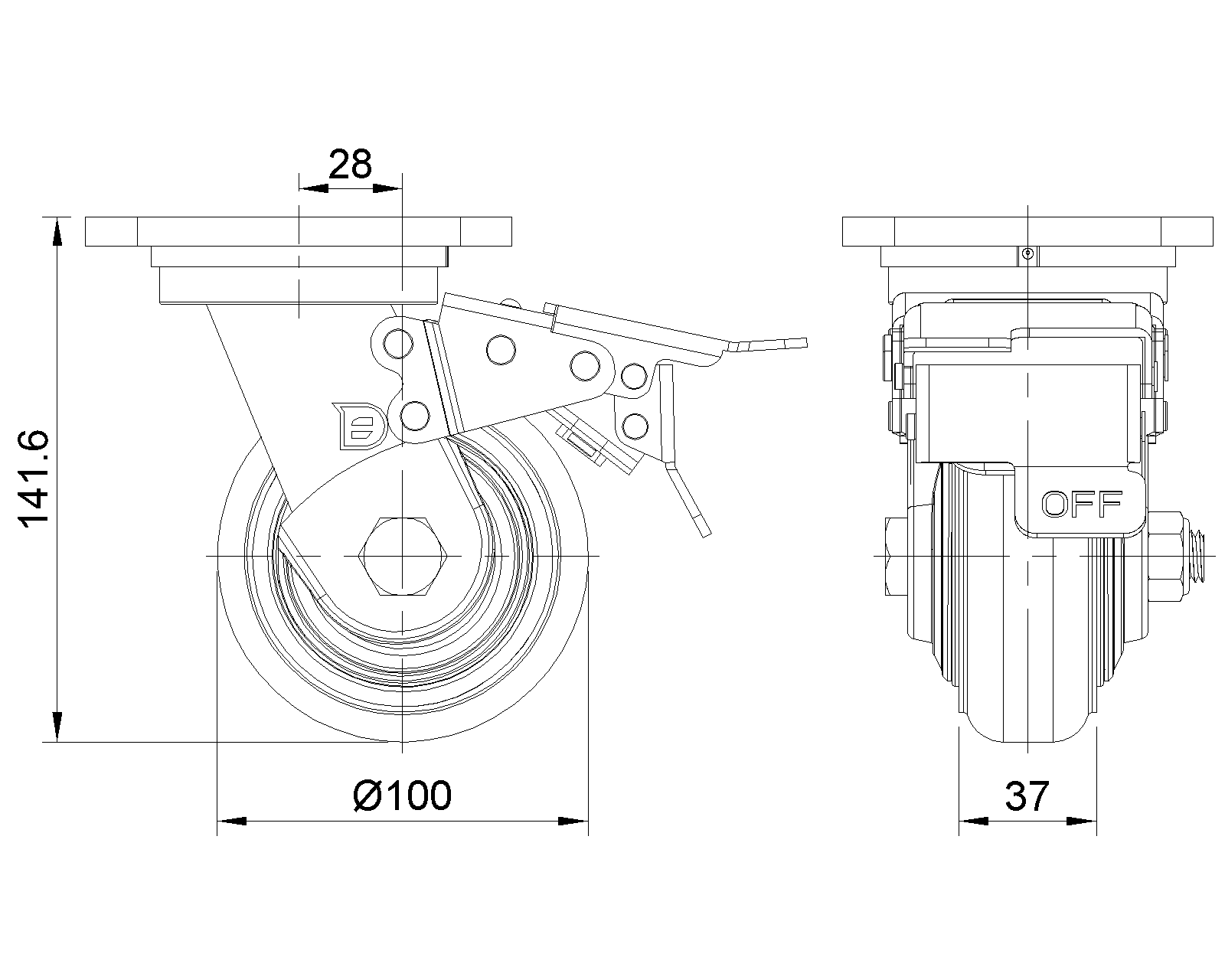 | Kéo NBR Wheel (Mill Raw) Đường kính bánh xe × Chiều rộng bánh xe 100 x 37mm |
