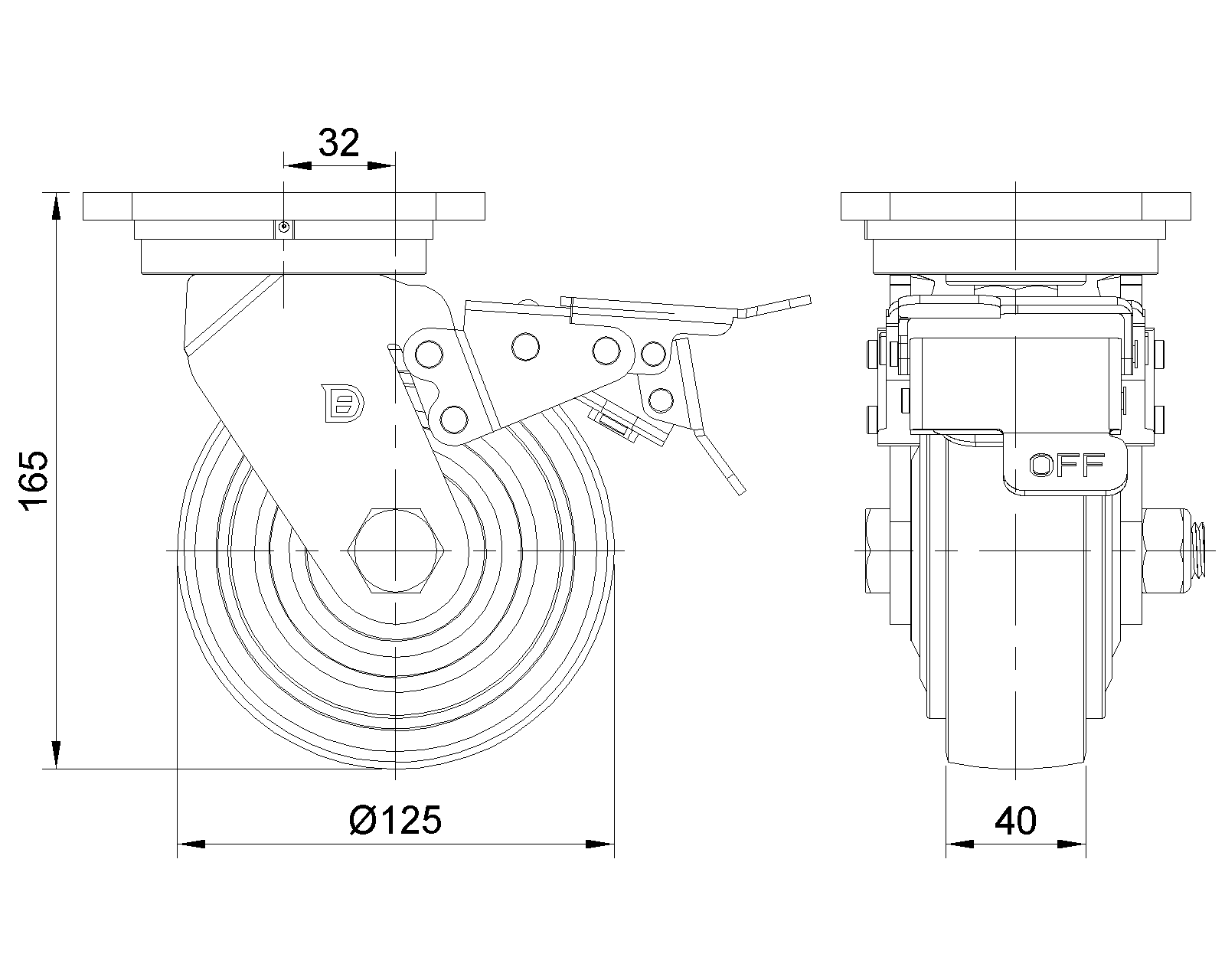 | Bánh xe PU (vòng cung đỏ) Đường kính bánh xe × Chiều rộng bánh xe 125 × 40mm |