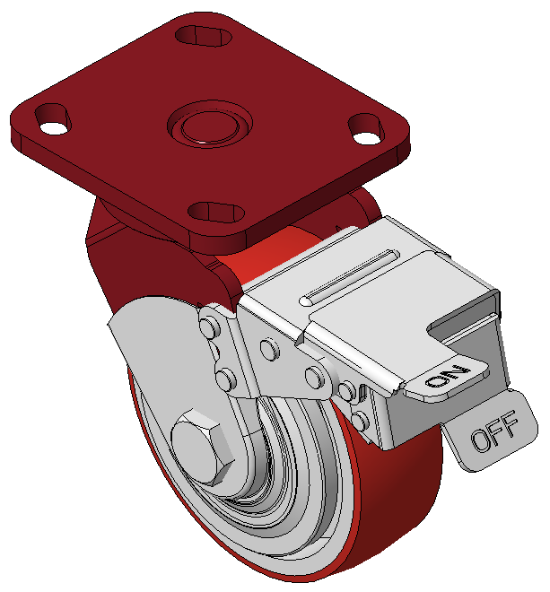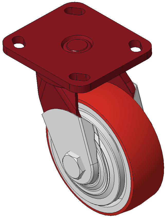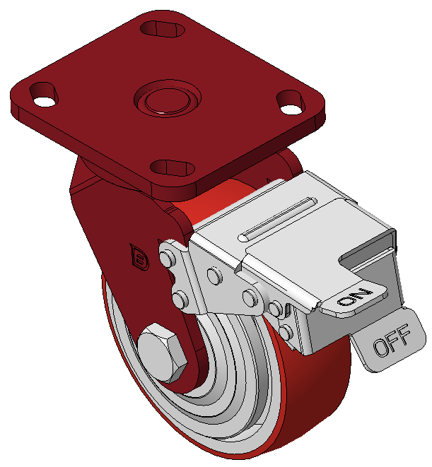 | Bánh xe có hệ thống phanh và khóa bánh trước, khung thép hàn Sơn đỏ, lắp đế, khoảng cách lỗ 85x70 Lõi bánh xe bằng gang, gai polyurethane chất lượng cao, phay màu đỏ Ổ bi bánh xe—ổ bi chính xác với nắp bánh xe chống quấn đặc biệt |