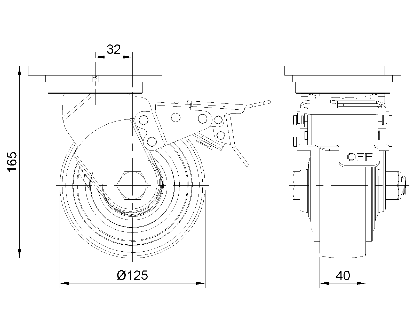| Bánh xe PU (vòng cung đỏ) Đường kính bánh xe × Chiều rộng bánh xe 125 × 40mm |