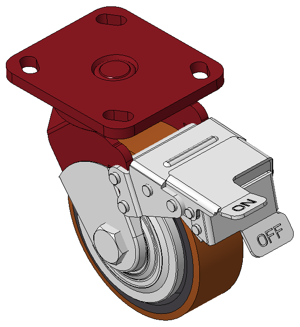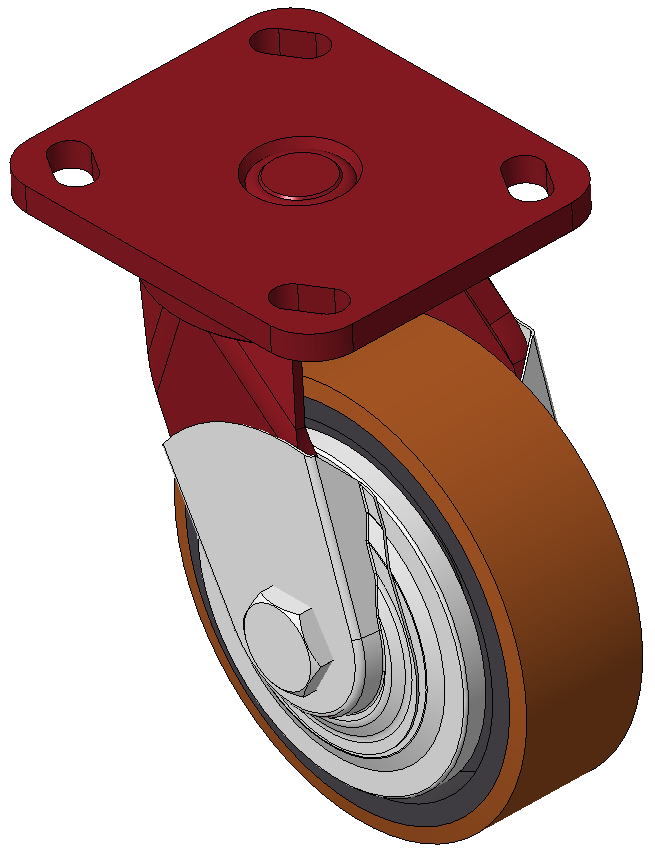 | Bánh xe có phanh trước và hệ thống khóa, khung thép hàn Sơn đỏ, lắp đế, khoảng cách lỗ 85x70 Lõi gang, gai polyurethane chất lượng cao, phay màu nâu Vòng bi bánh xe—vòng bi chính xác với nắp chống quấn đặc biệt |