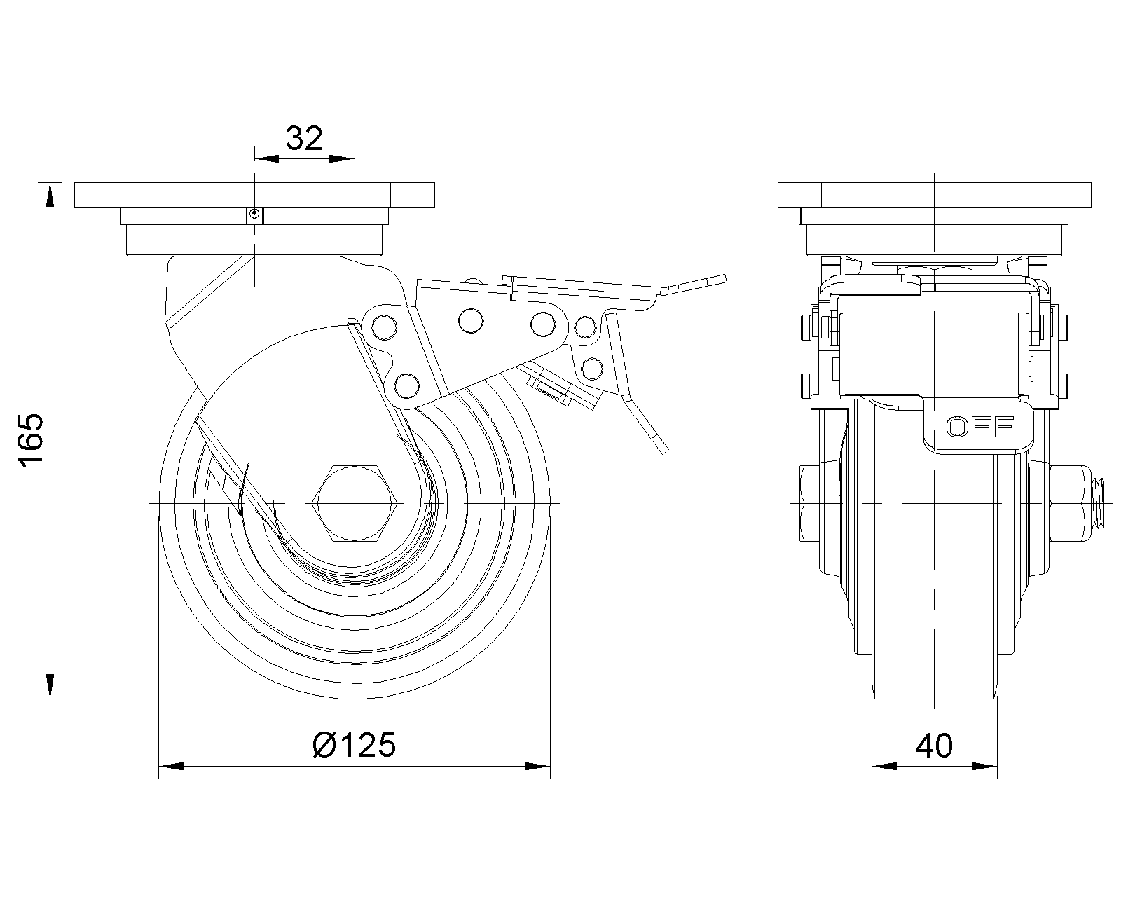 | Bánh xe QPU (nâu phẳng) Đường kính bánh xe × Chiều rộng bánh xe 125 x 40mm |