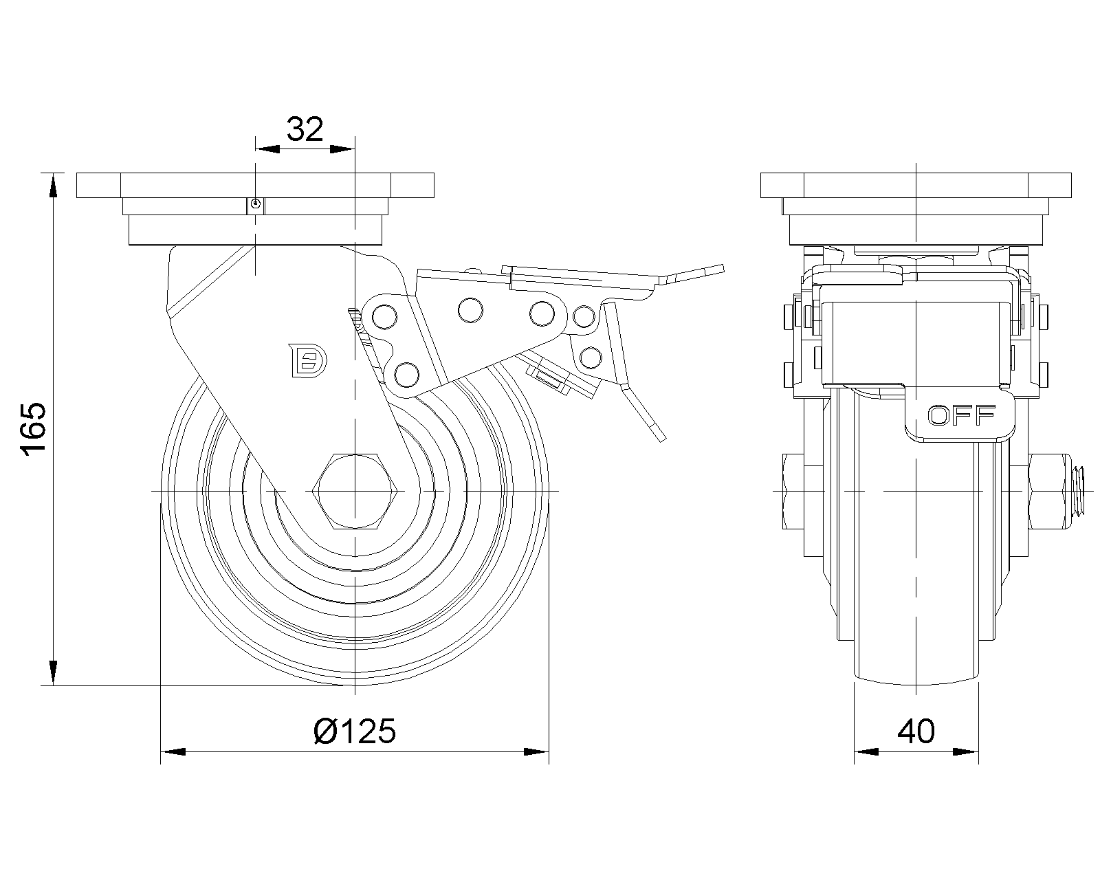 | Bánh xe MRC (trong suốt) Đường kính bánh xe × Chiều rộng bánh xe 125 x 40mm |