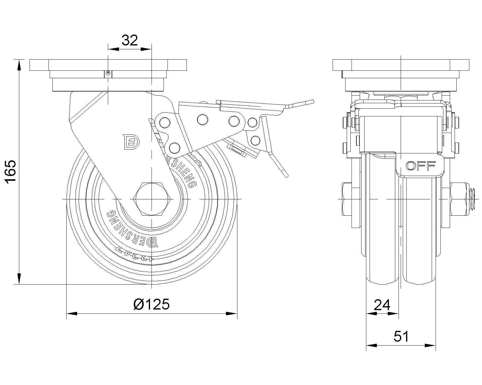 | Bánh xe ZQPU (hồ quang nâu) Đường kính bánh xe × Chiều rộng bánh xe 125 x 24 (51) mm |