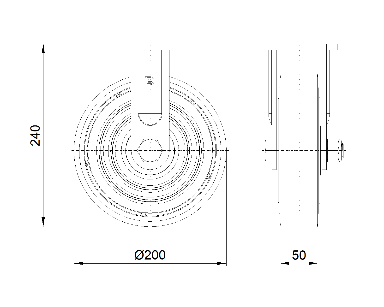 đơn vị mét đế quốc Đường kính bánh xe 200mm Chiều rộng bánh xe 50mm |