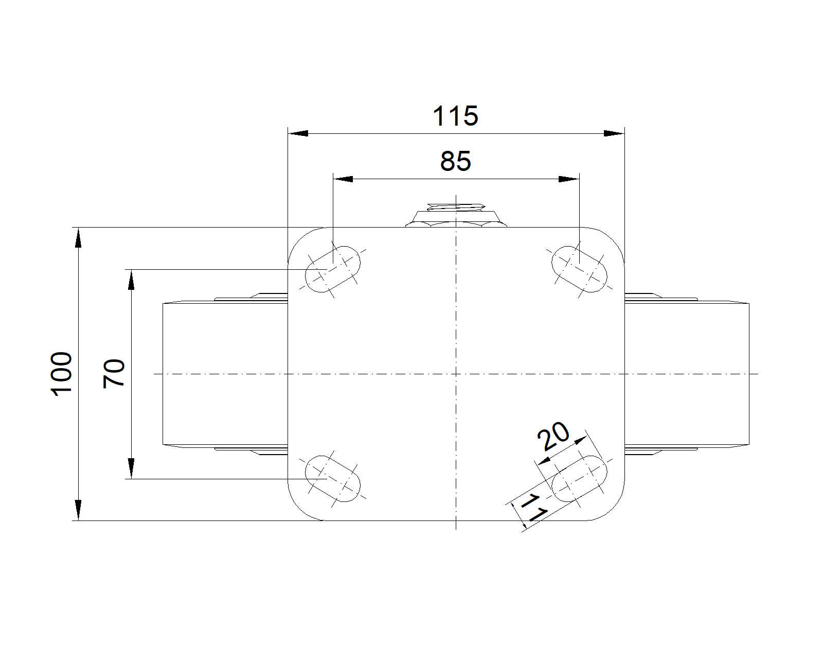 Quy cách tấm lắp 100 x 115mm khoảng cách các lỗ trên tấm nền 85 x 70mm Khoảng cách các lỗ lắp 20 x 11mm Tổng chiều cao 240mm Độ cứng 93±5° Shore A Tải trọng (động) 450kgs |