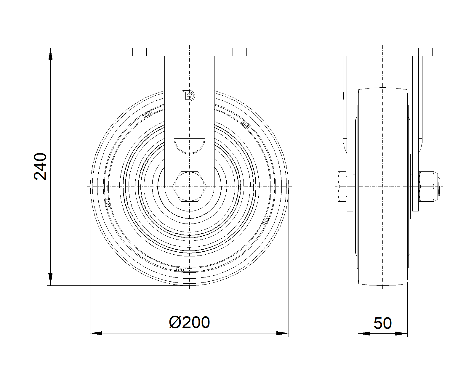 | Bánh xe PU (vòng cung đỏ) Đường kính bánh xe × Chiều rộng bánh xe 200 x 50mm |