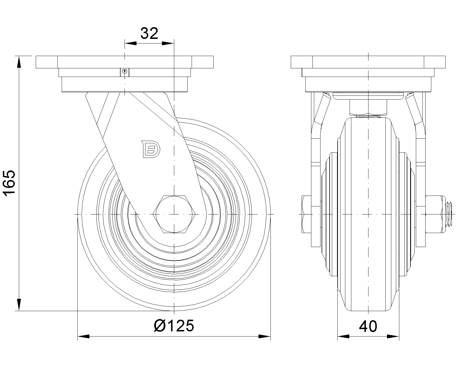 đơn vị mét đế quốc Đường kính bánh xe 125mm Chiều rộng bánh xe 40mm  |