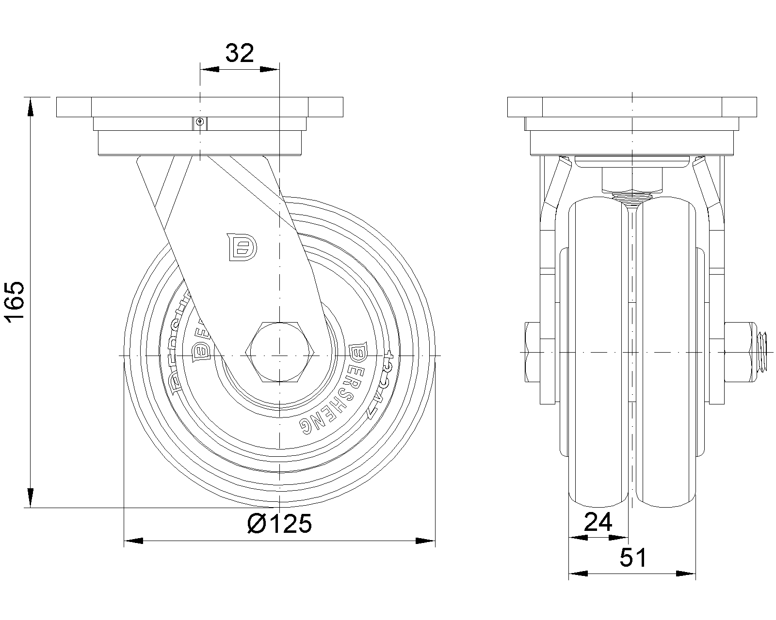 | Bánh xe ZQPU (hồ quang nâu) Đường kính bánh xe × Chiều rộng bánh xe 125 x 24 (51) mm |