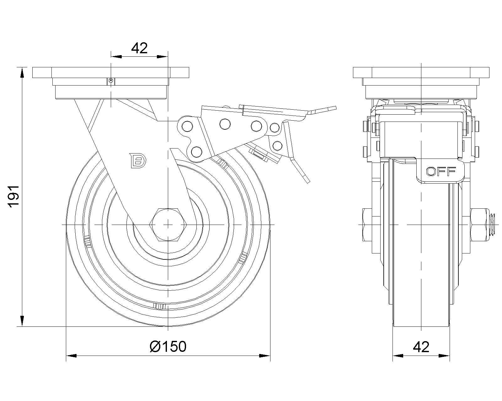 | Bánh xe QPU (nâu phẳng) Đường kính bánh xe × Chiều rộng bánh xe 150 x 42mm |