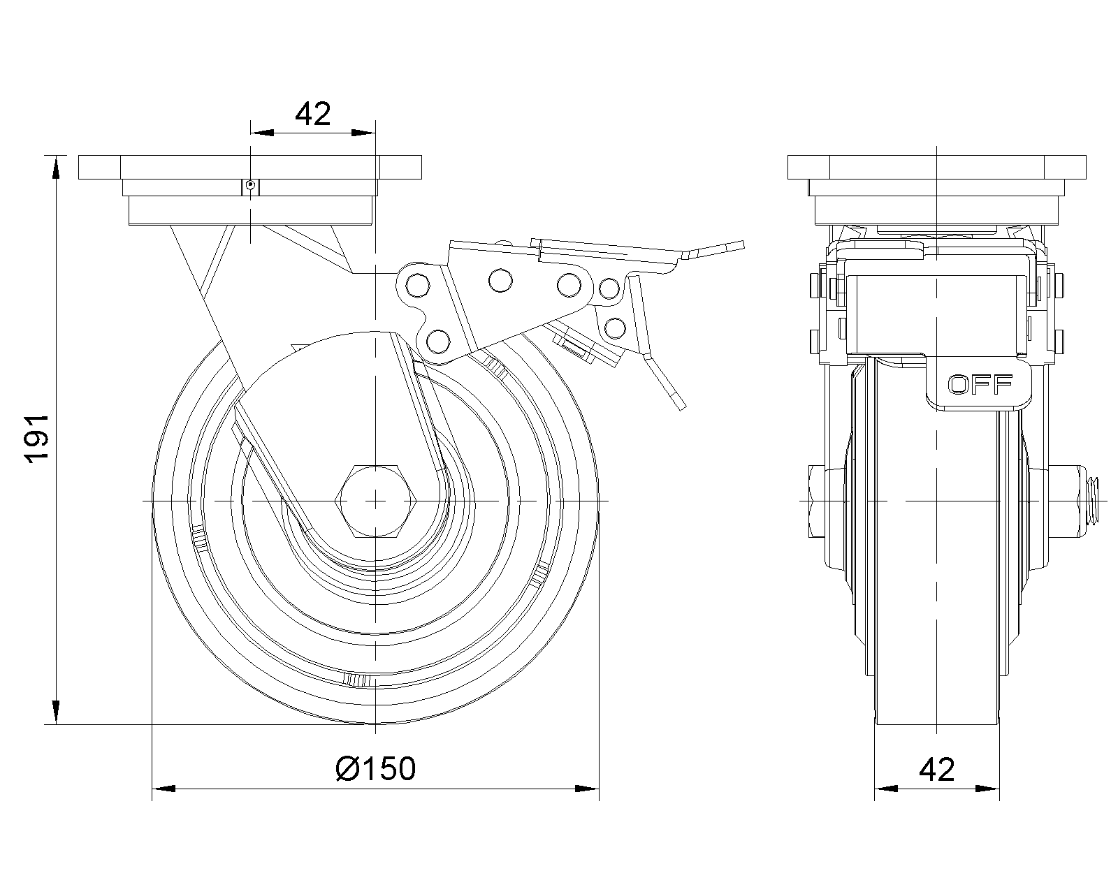 | Bánh xe QPU (Màu nâu vòng cung) đường kính bánh xe × chiều rộng bánh xe 150 x 42mm |