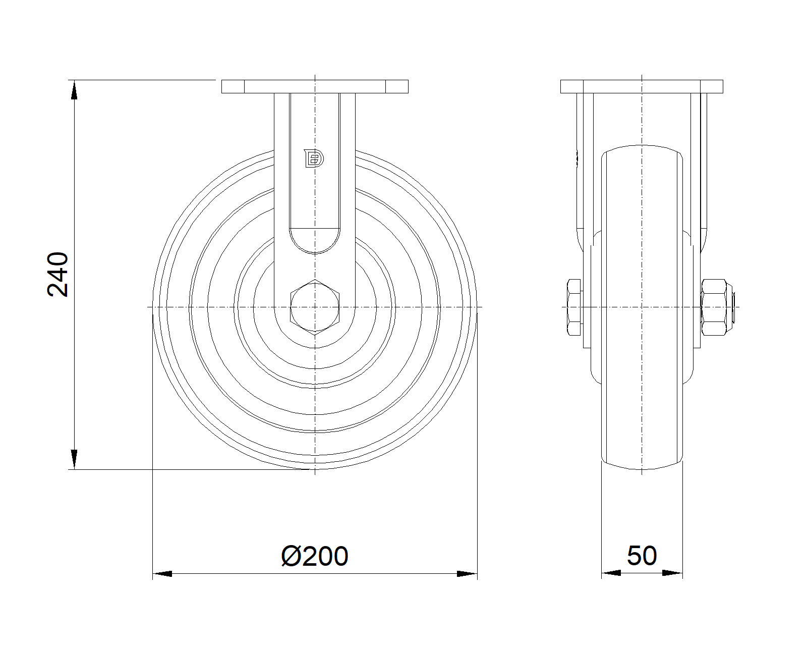| Bánh xe VQPU (hồ quang nâu) Đường kính bánh xe × Chiều rộng bánh xe 200 x 50mm |