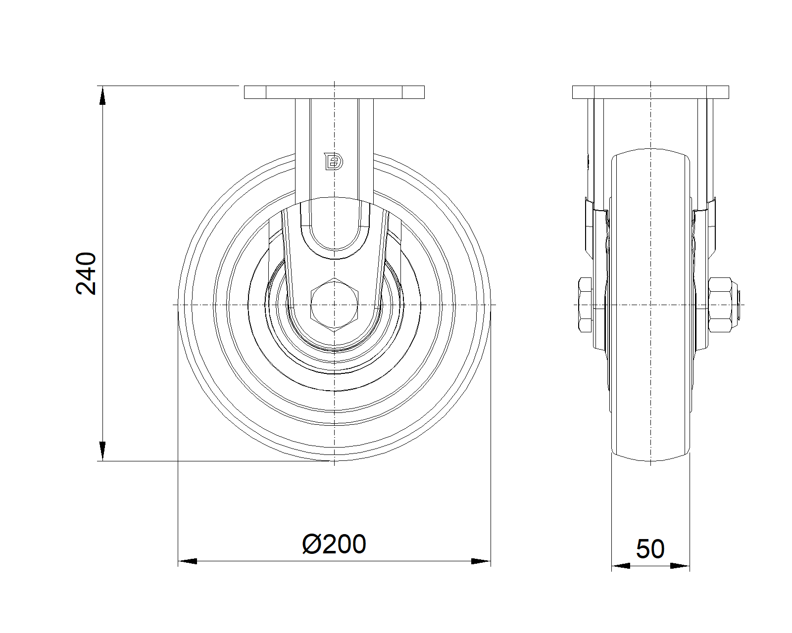 | Bánh xe VQPU (hồ quang nâu) Đường kính bánh xe × Chiều rộng bánh xe 200 x 50mm |