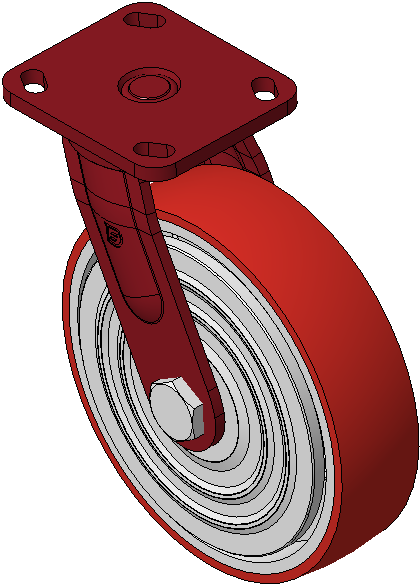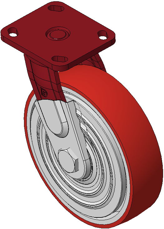 Hoàn thiện sơn đỏ, lắp đế, khoảng cách lỗ 85x70 Lõi gang với gai polyurethane chất lượng cao, phay màu đỏ Vòng bi bánh xe—vòng bi chính xác với nắp chống quấn đặc biệt |
