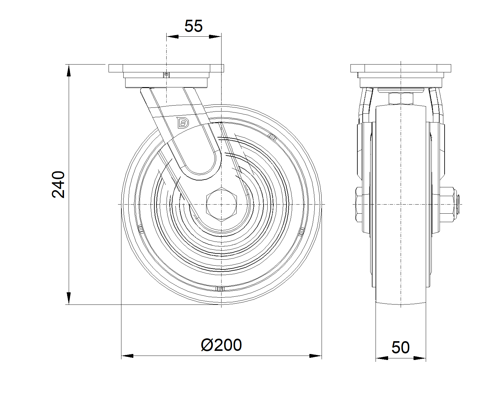 | Bánh xe QPU (hồ quang nâu) Đường kính bánh xe × Chiều rộng bánh xe 200 x 50mm |