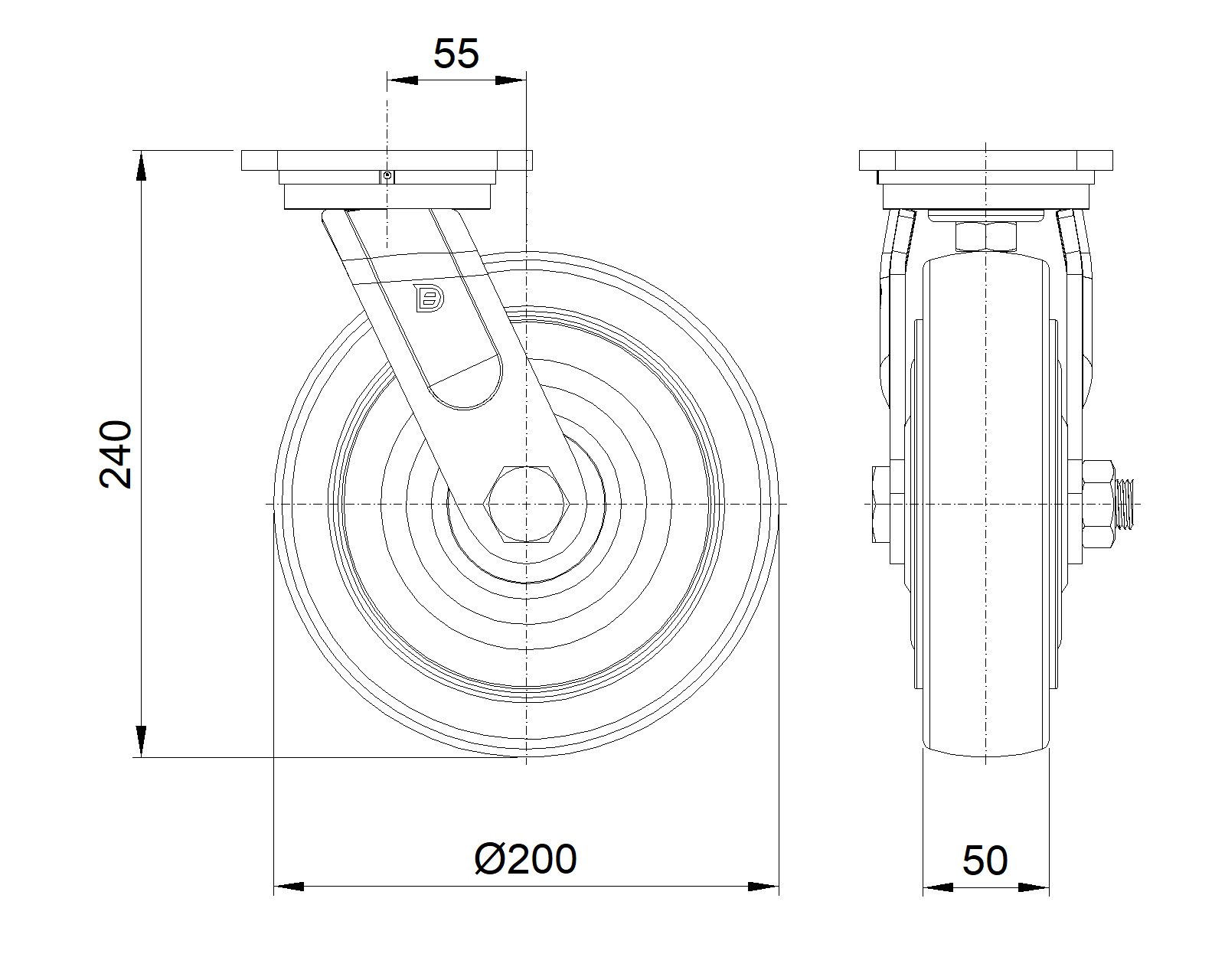 | Bánh xe MRC (trong suốt) Đường kính bánh xe × Chiều rộng bánh xe 200 x 50mm |