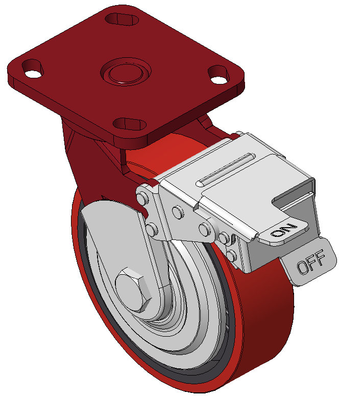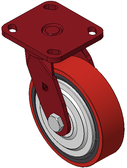 Lắp đế, khoảng cách lỗ 85 x 70 Lõi gang với gai polyurethane chất lượng cao, phay màu đỏ Vòng bi bánh xe—vòng bi chính xác với nắp chống quấn đặc biệt |