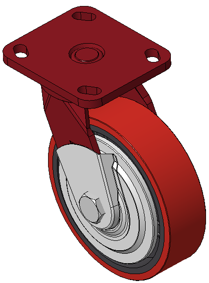 | Bánh xe xoay với khung thép hàn, sơn phủ màu đỏ
