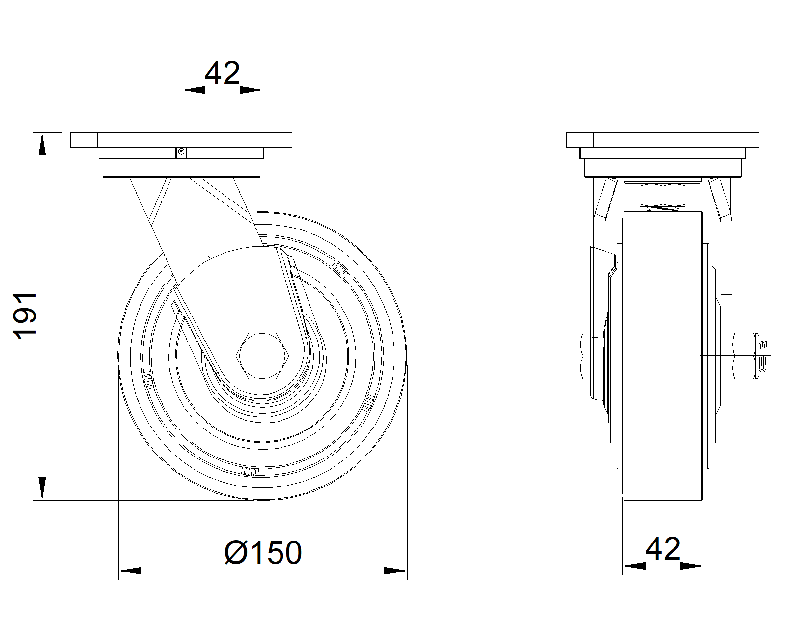 đơn vị mét đế quốc Đường kính bánh xe 150mm Chiều rộng bánh xe 42mm |