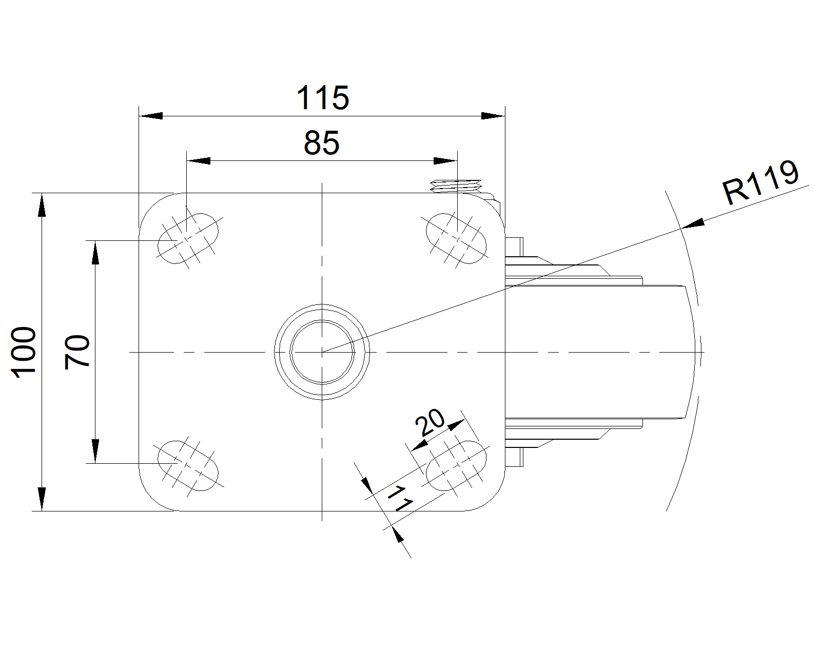 Lắp đế, khoảng cách lỗ 85 x 70 Lõi bánh xe bằng gang, gai polyurethane chất lượng cao, phay màu đỏ Vòng bi bánh xe - vòng bi chính xác |