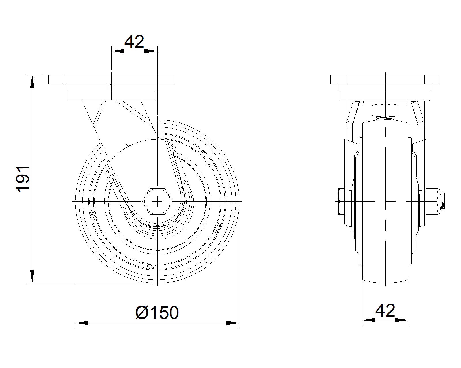 | Bánh xe PU (vòng cung đỏ) Đường kính bánh xe × Chiều rộng bánh xe 150x 42mm |