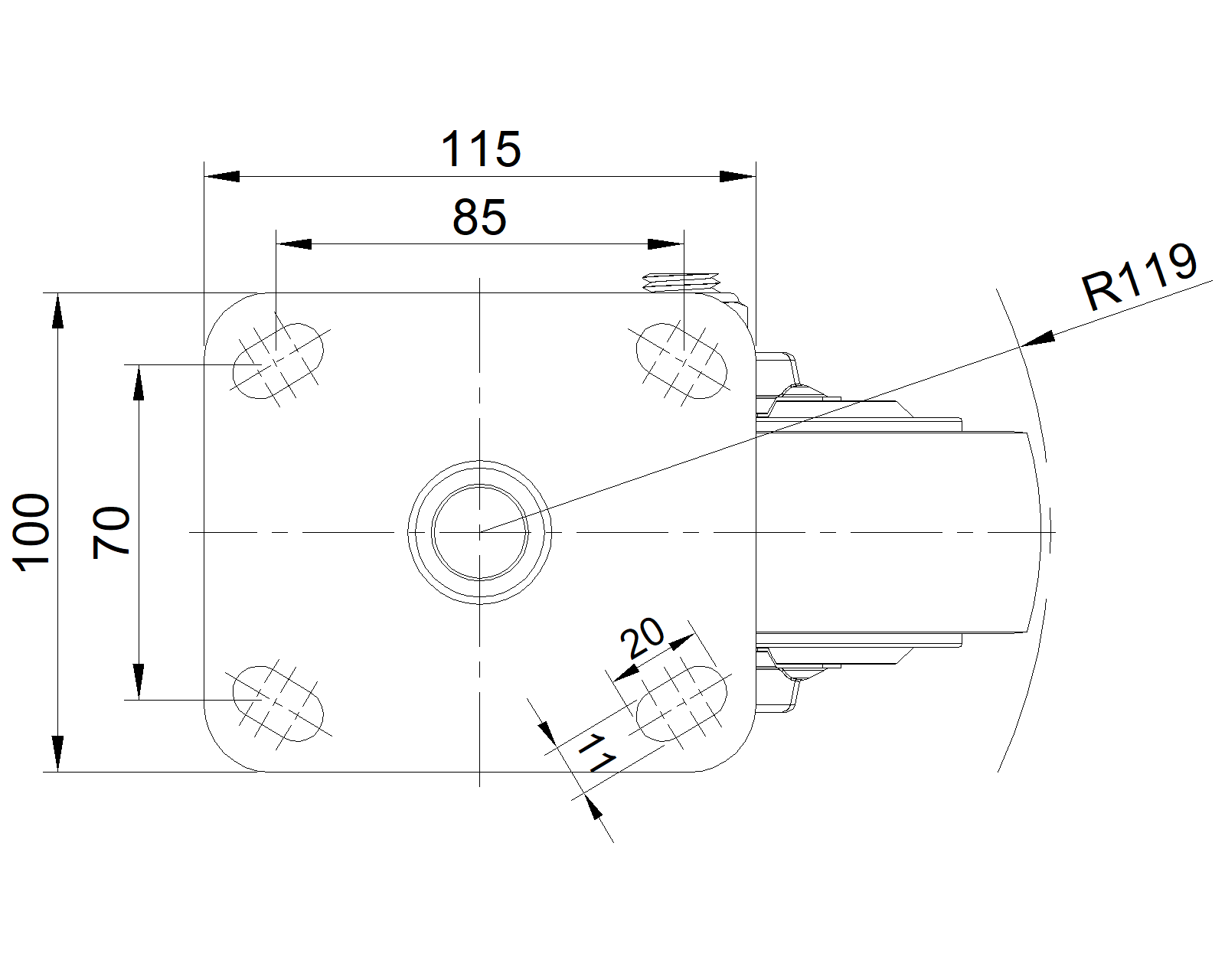 Lắp đế, khoảng cách lỗ 85 x 70 Lõi gang với gai polyurethane chất lượng cao, phay màu đỏ Vòng bi bánh xe—vòng bi chính xác với nắp chống quấn đặc biệt |