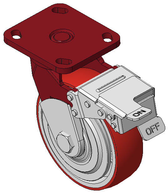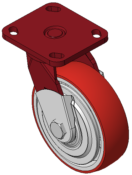| Bánh xe xoay với khung thép hàn, sơn phủ màu đỏ