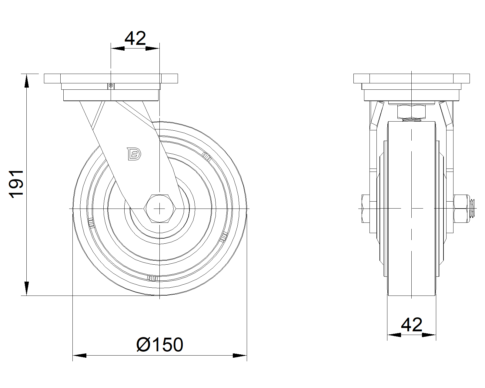 | Bánh xe QPU (nâu phẳng) Đường kính bánh xe × Chiều rộng bánh xe 150 x 42mm |