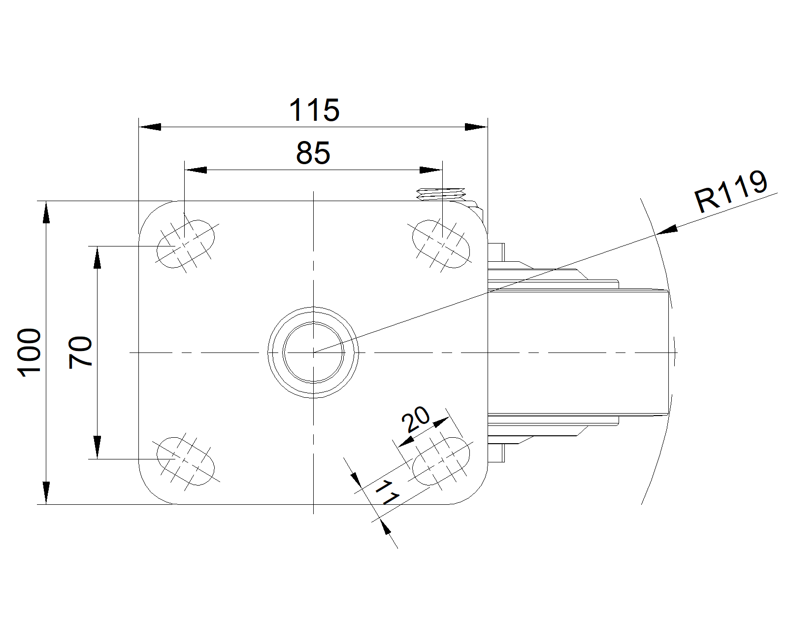 Lắp đế, khoảng cách lỗ 85 x 70 Lõi gang với rãnh polyurethane chất lượng cao, phay màu nâu Vòng bi bánh xe—vòng bi cầu chính xác |