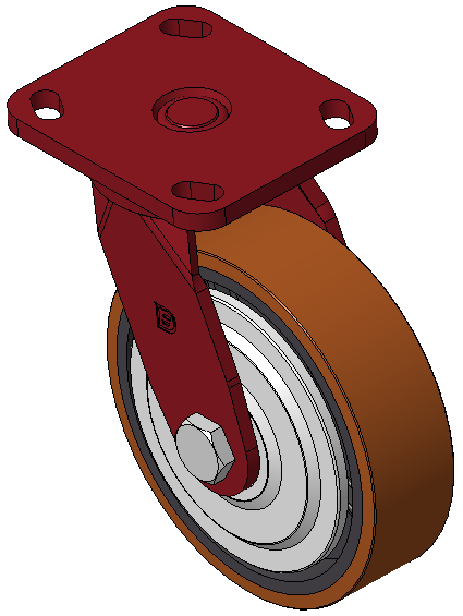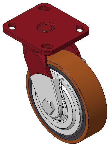 | Bánh xe xoay với khung thép hàn, sơn phủ màu đỏ