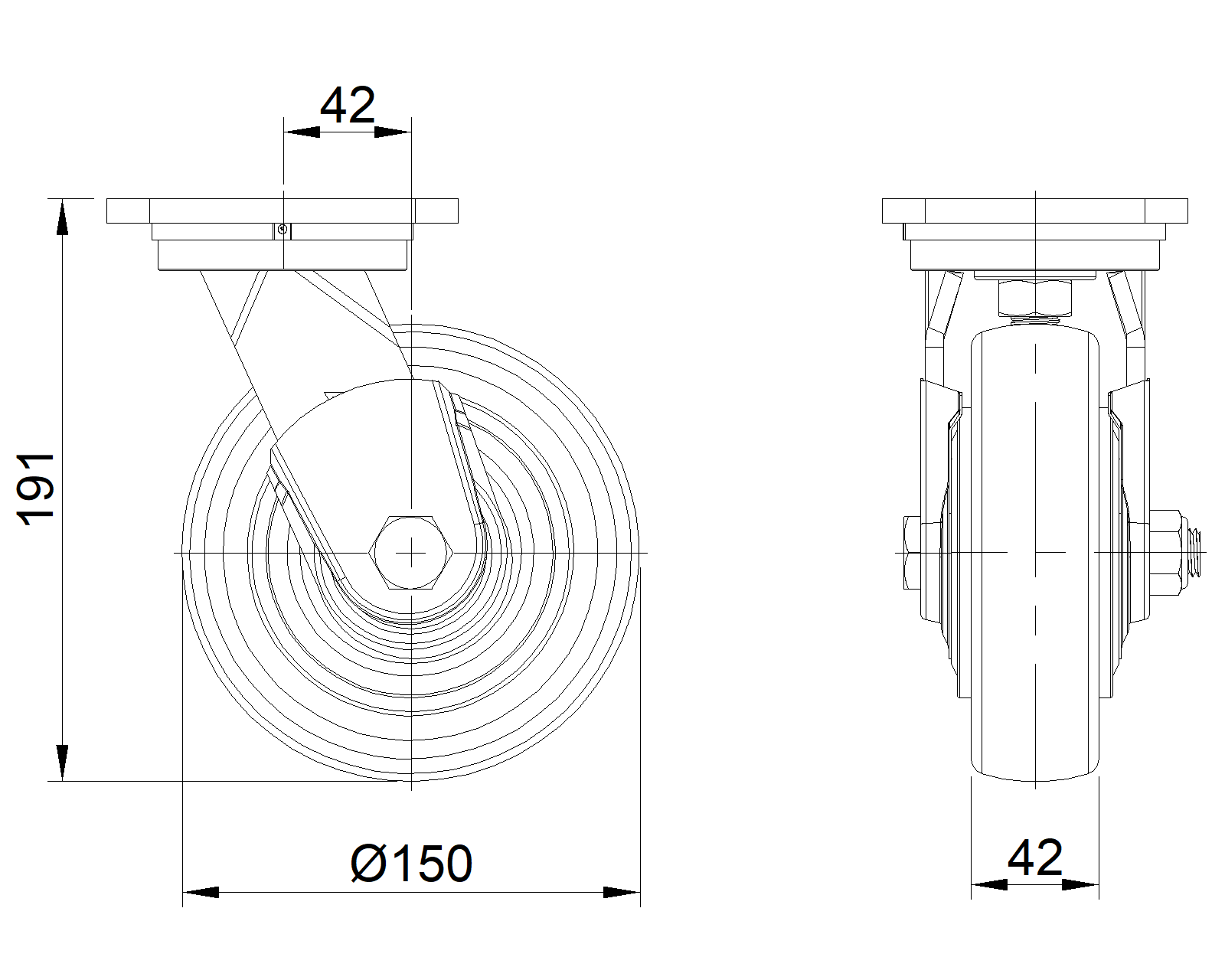 đơn vị mét đế quốc Đường kính bánh xe 150mm Chiều rộng bánh xe 42mm |