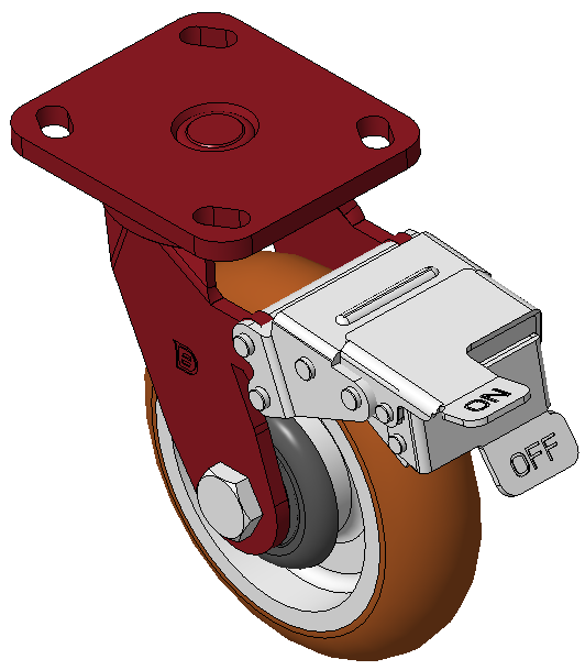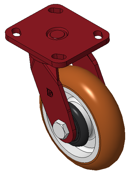 Hoàn thiện sơn đỏ, lắp đế, khoảng cách lỗ 85x70 Lõi bánh xe bằng gang, gai polyurethane chất lượng cao, màu nâu phay Vòng bi bánh xe—vòng bi cầu chính xác |