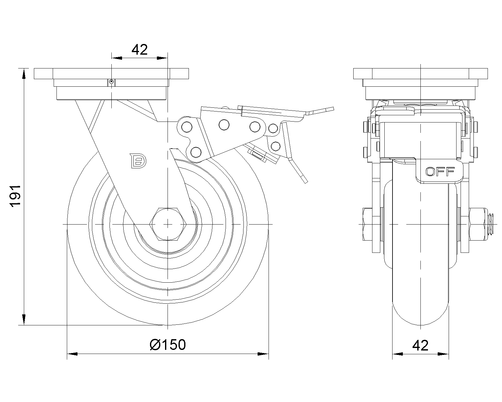 | Bánh xe EQPU (hồ quang nâu) Đường kính bánh xe × Chiều rộng bánh xe 150 x 42mm |