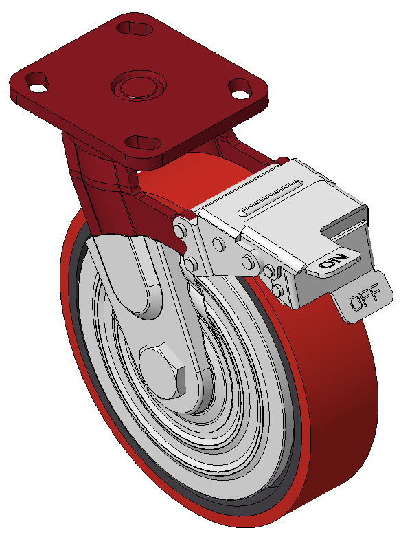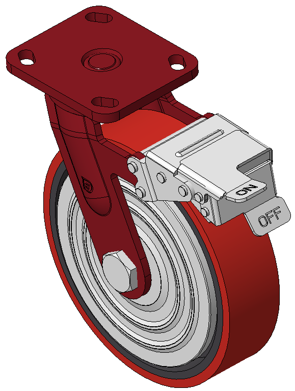 | Bánh xe có hệ thống phanh và khóa bánh trước, khung thép hàn Sơn đỏ, lắp đế, khoảng cách lỗ 85x70 Lõi bánh xe bằng gang, gai polyurethane chất lượng cao, phay màu đỏ Ổ bi bánh xe—ổ bi chính xác với nắp bánh xe chống quấn đặc biệt |
