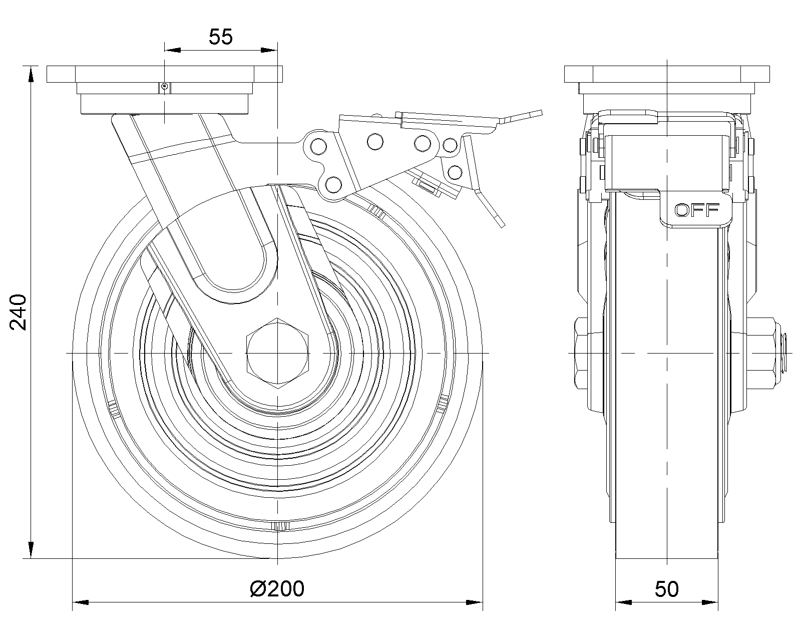 | Bánh xe PU (đỏ phẳng) Đường kính bánh xe × Chiều rộng bánh xe 200 x 50mm |