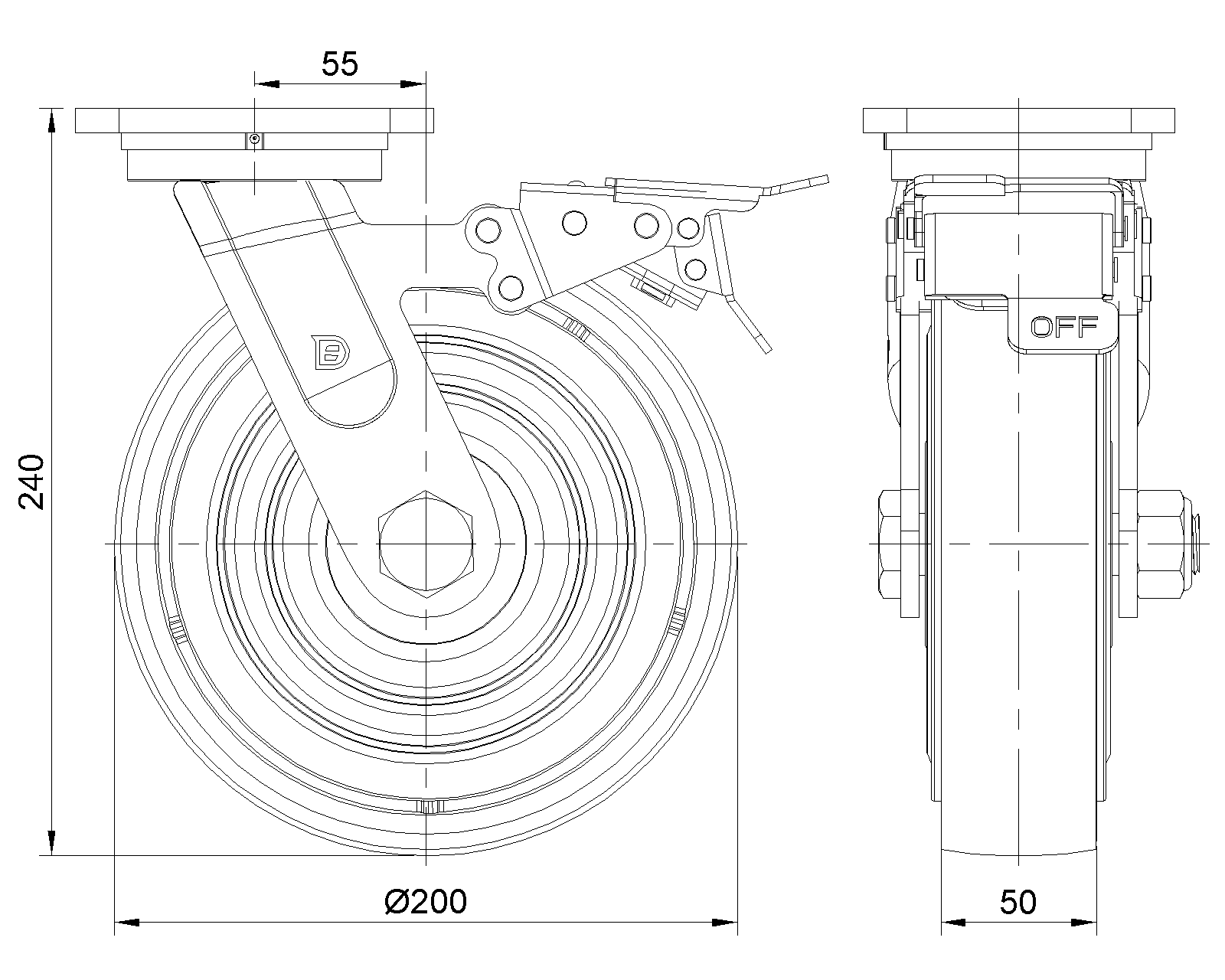 | PU Bánh xe (Vòng cung đỏ) đường kính bánh xe × chiều rộng bánh xe 200 × 50mm |