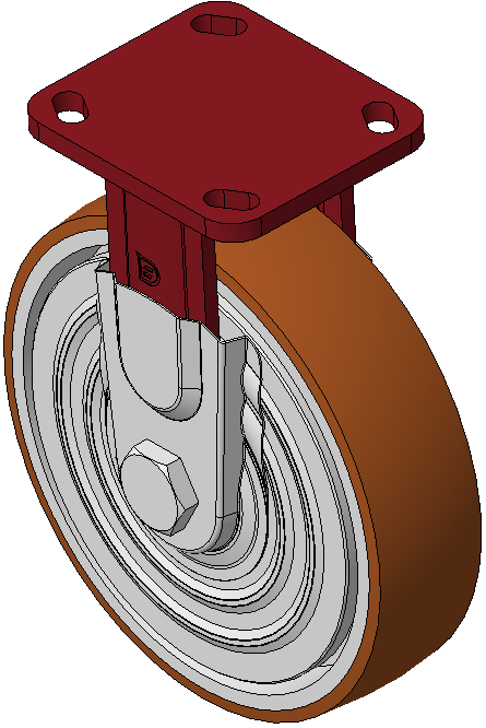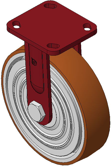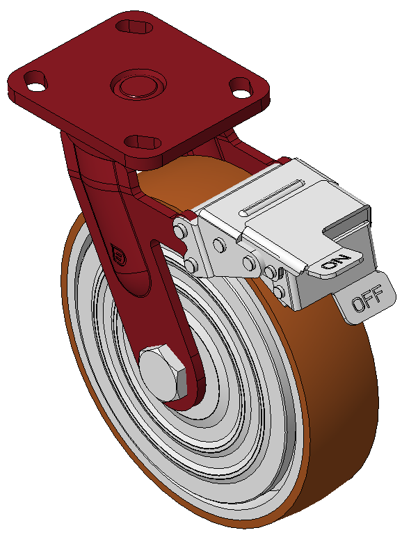Bánh xe có phanh trước và hệ thống khóa, khung thép hàn Hoàn thiện sơn đỏ, lắp đế, khoảng cách lỗ 85x70 Lõi bánh xe bằng gang, gai polyurethane chất lượng cao, màu nâu phay Vòng bi bánh xe - vòng bi bi chính xác |