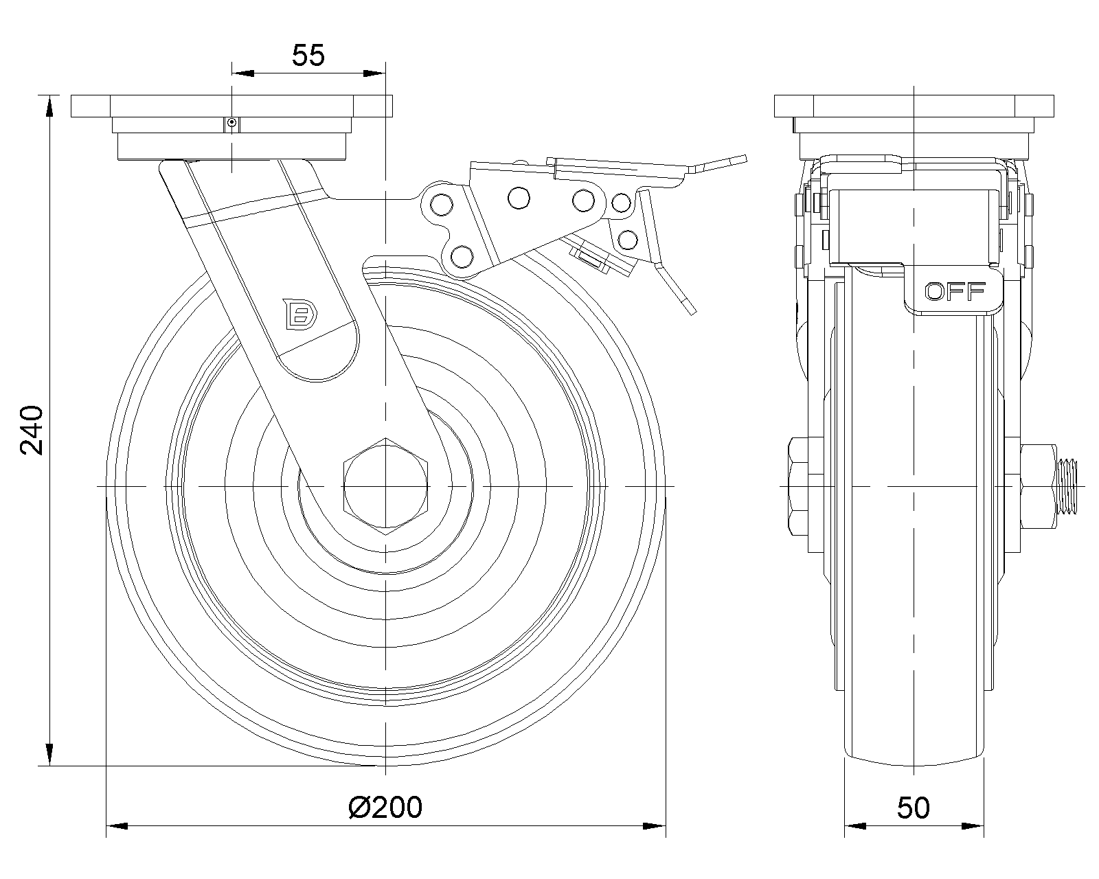 | Bánh xe MRC (trong suốt) Đường kính bánh xe × Chiều rộng bánh xe 200 x 50mm |