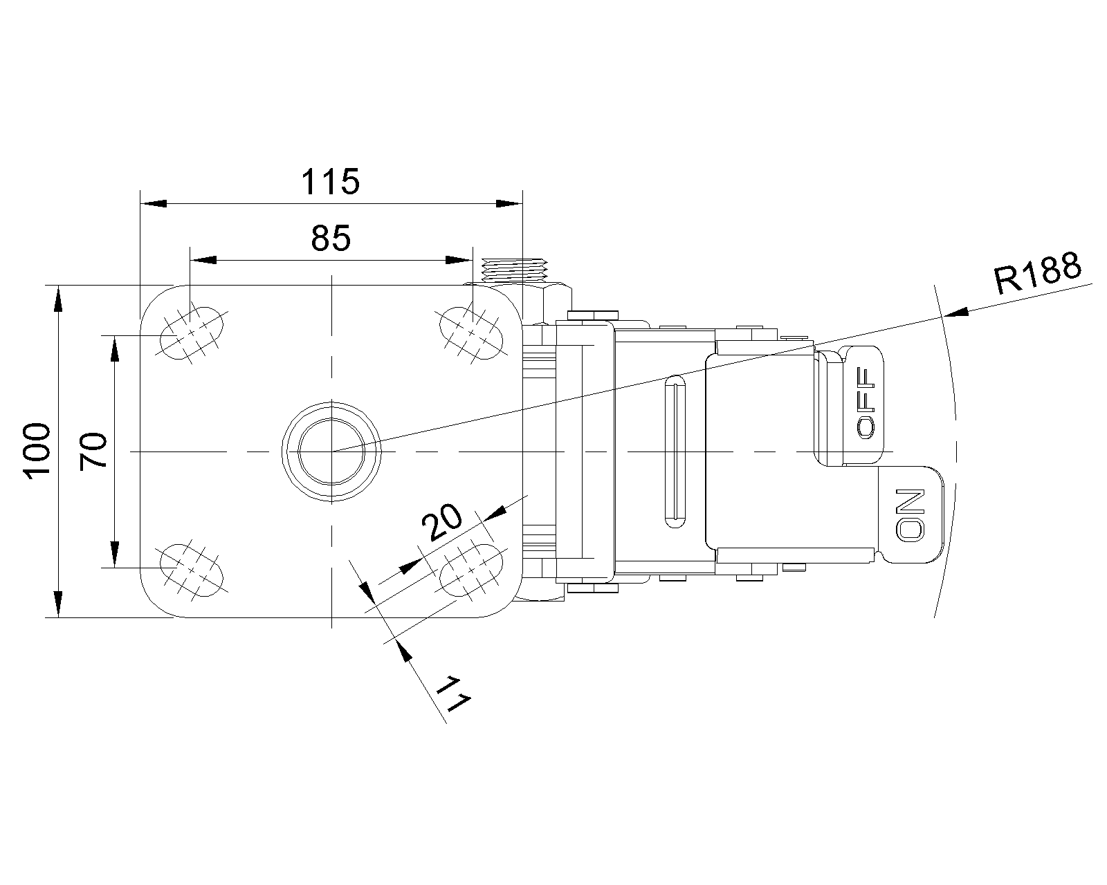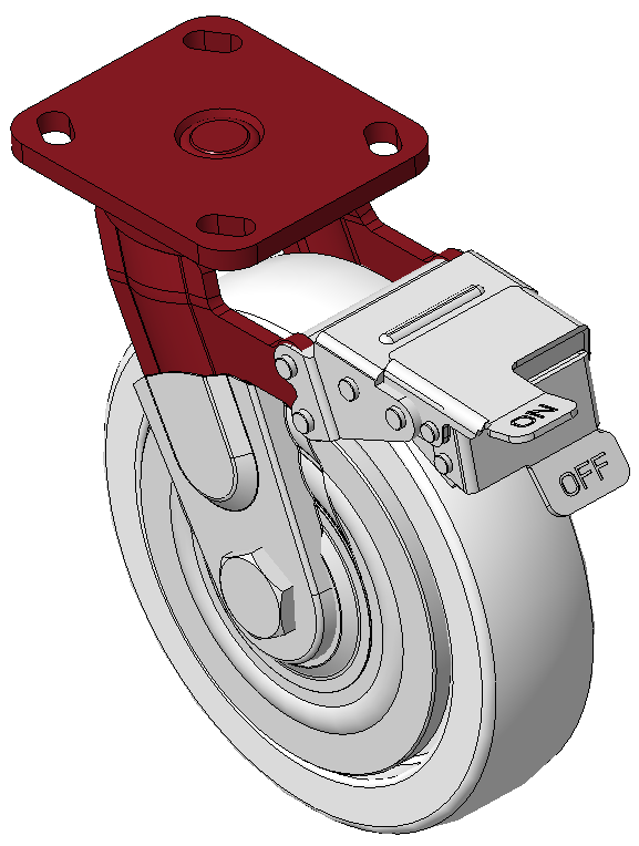 | Bánh xe có phanh trước và hệ thống khóa, khung thép hàn Sơn đỏ, lắp đế, khoảng cách lỗ 85x70 Lõi bánh xe bằng nhựa nhiệt dẻo, gai bánh xe tự nhiên Vòng bi bánh xe—vòng bi cầu chính xác |