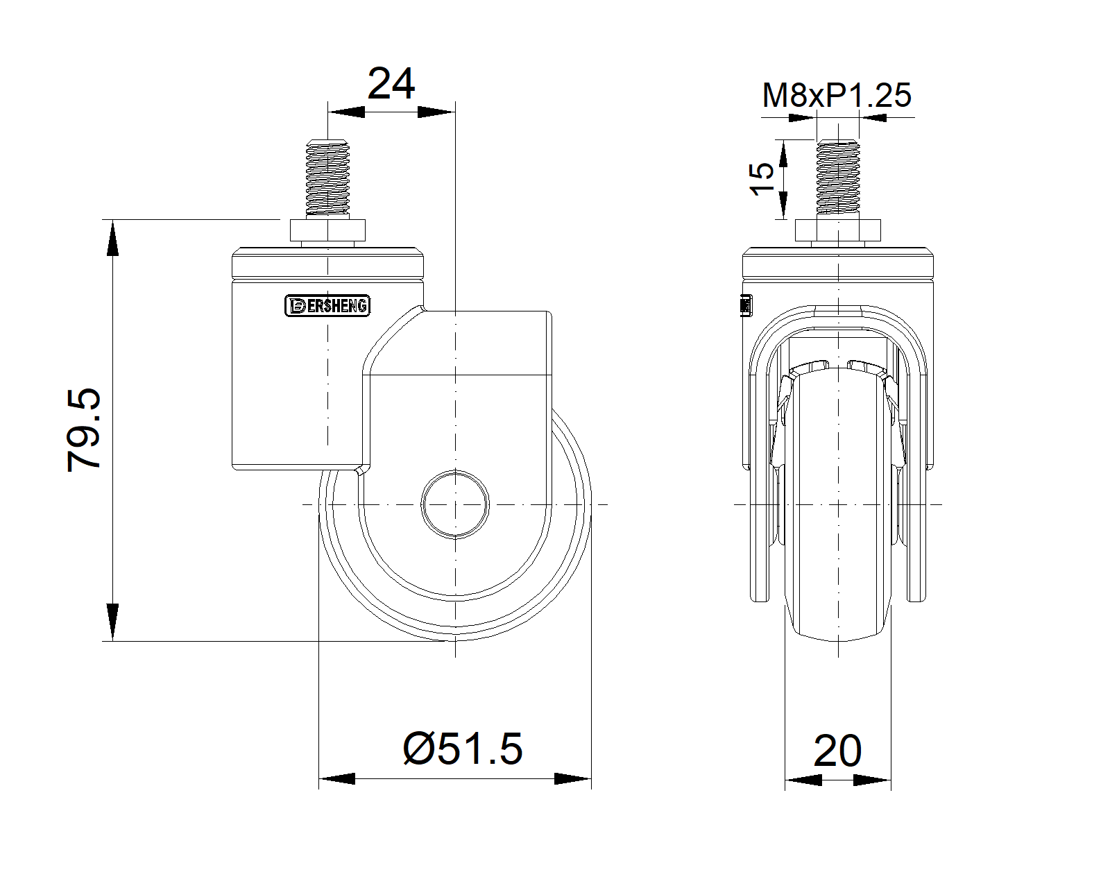 | PPR Bánh xe (đen) Đường kính bánh xe × Chiều rộng bánh xe 51,5 x 20mm |