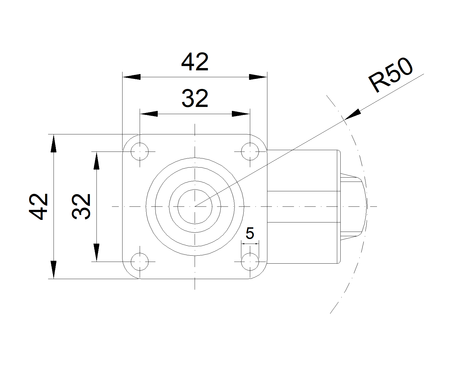 | Bánh xe xoay với đế lỗ góc 32x32