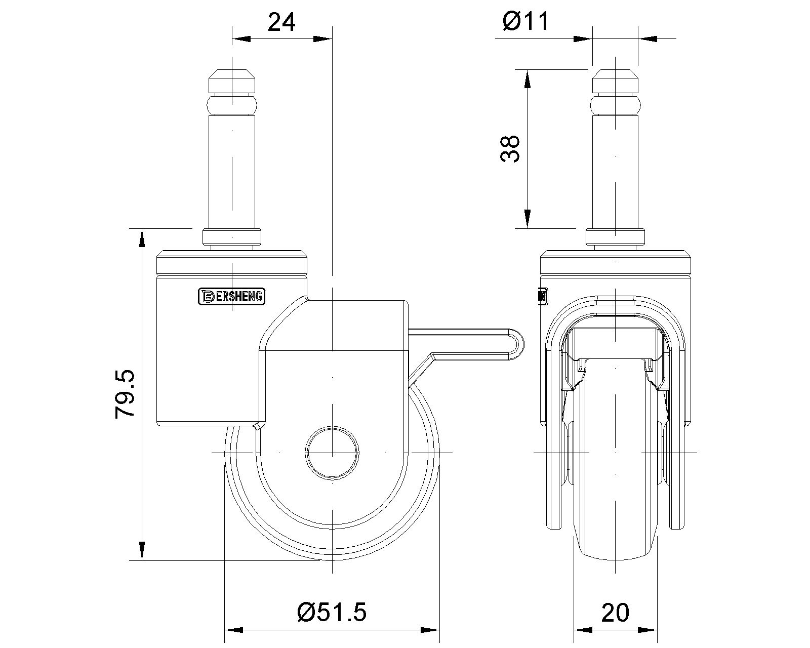 | Bánh xe khóa đơn, phanh đơn, khung dập đinh tán—Ø11x38L