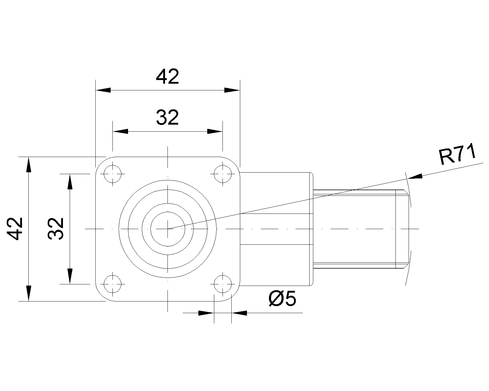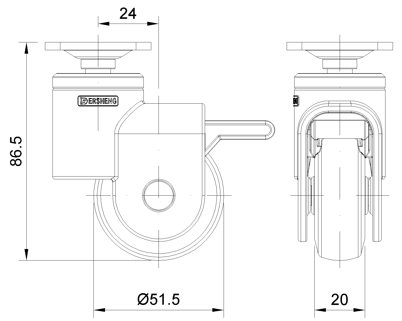 | Bánh xe khóa đơn, phanh đơn, đế lỗ góc 32x32