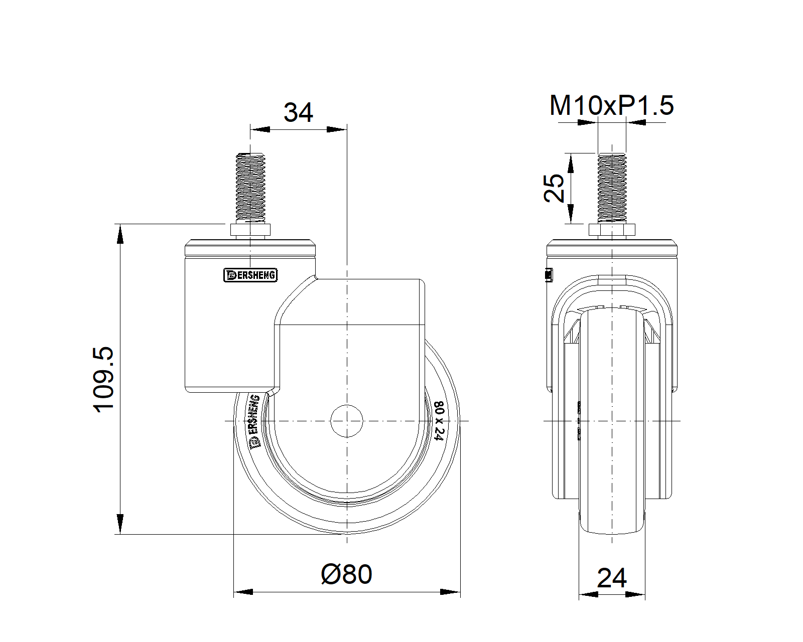 | PPR Bánh xe (đen) Đường kính bánh xe × Chiều rộng bánh xe 80 x 24mm |