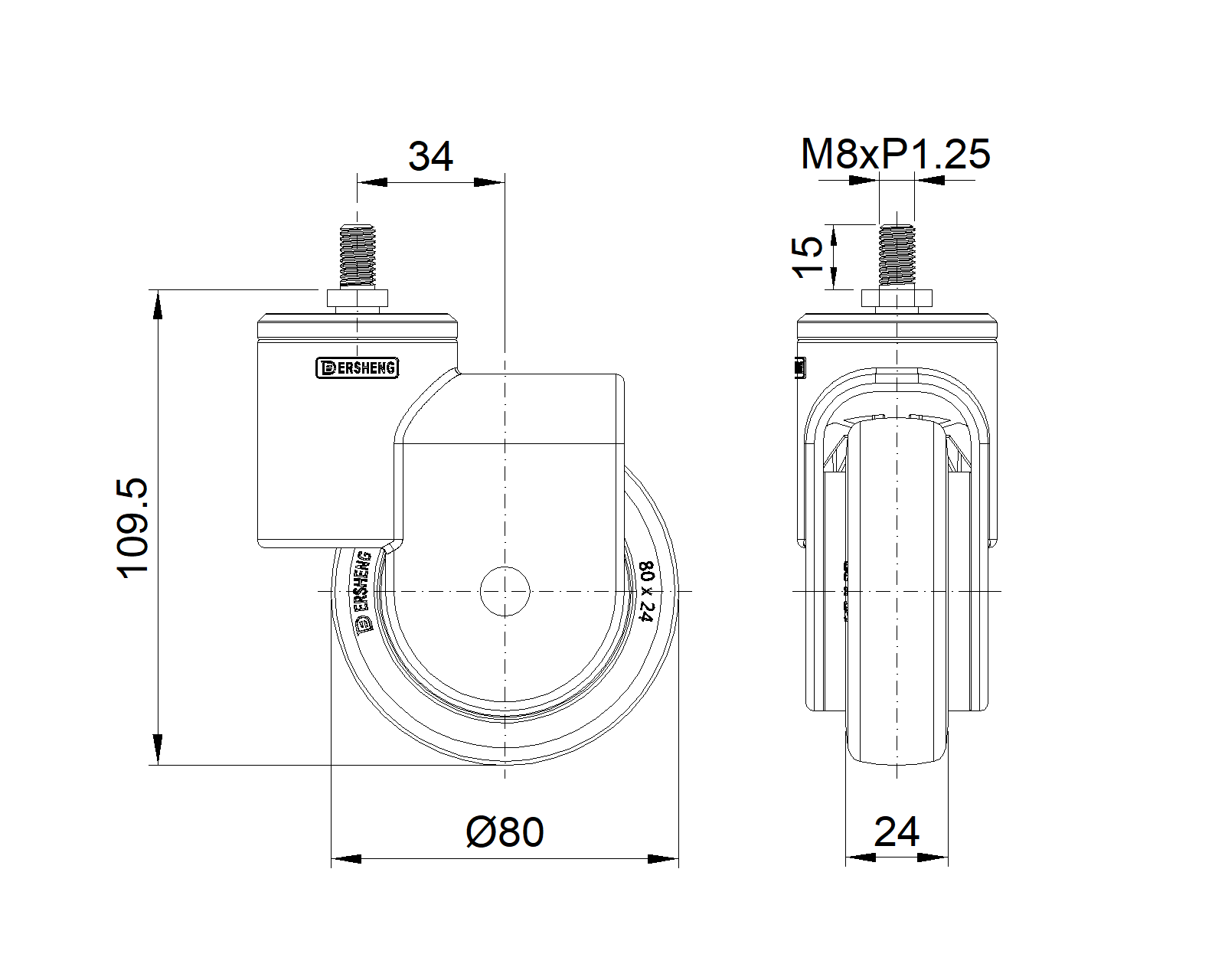 | PPR Bánh xe (đen) Đường kính bánh xe × Chiều rộng bánh xe 80 x 24mm |