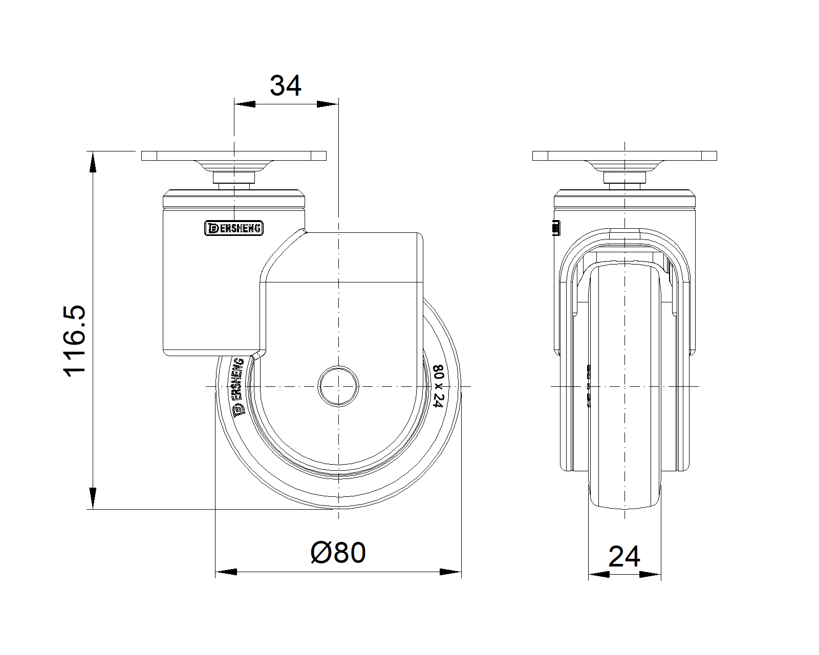 | PPR Bánh xe (đen) Đường kính bánh xe × Chiều rộng bánh xe 80 x 24mm |