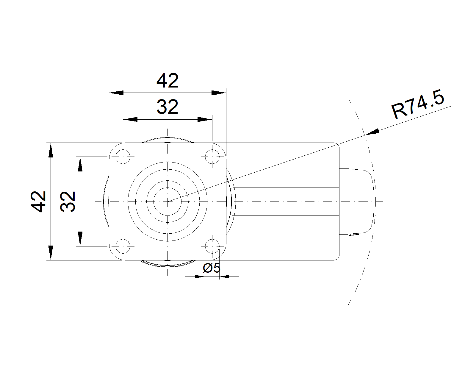 | Bánh xe xoay với đế lỗ nghiêng 32x32